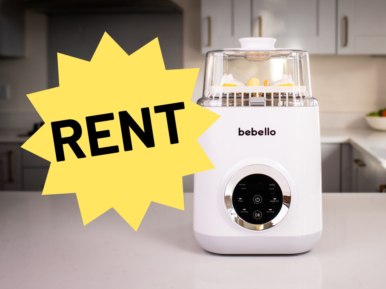 Bebello washer is rented exclusively through our rental partner Baboodle—who have a great range of parenthood products that you can bundle alongside the washer.