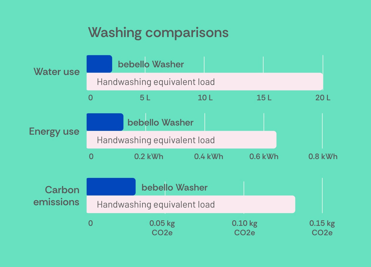 This means Bebello Washer emits 78% less carbon per handwashing session!