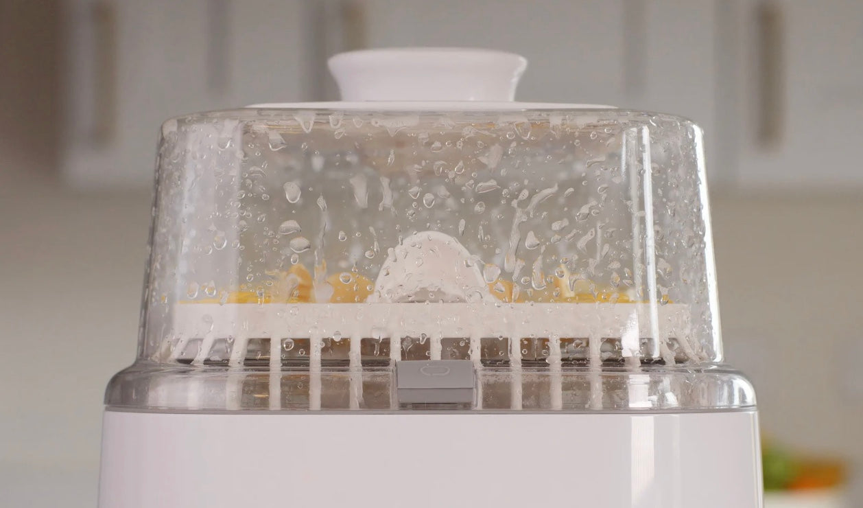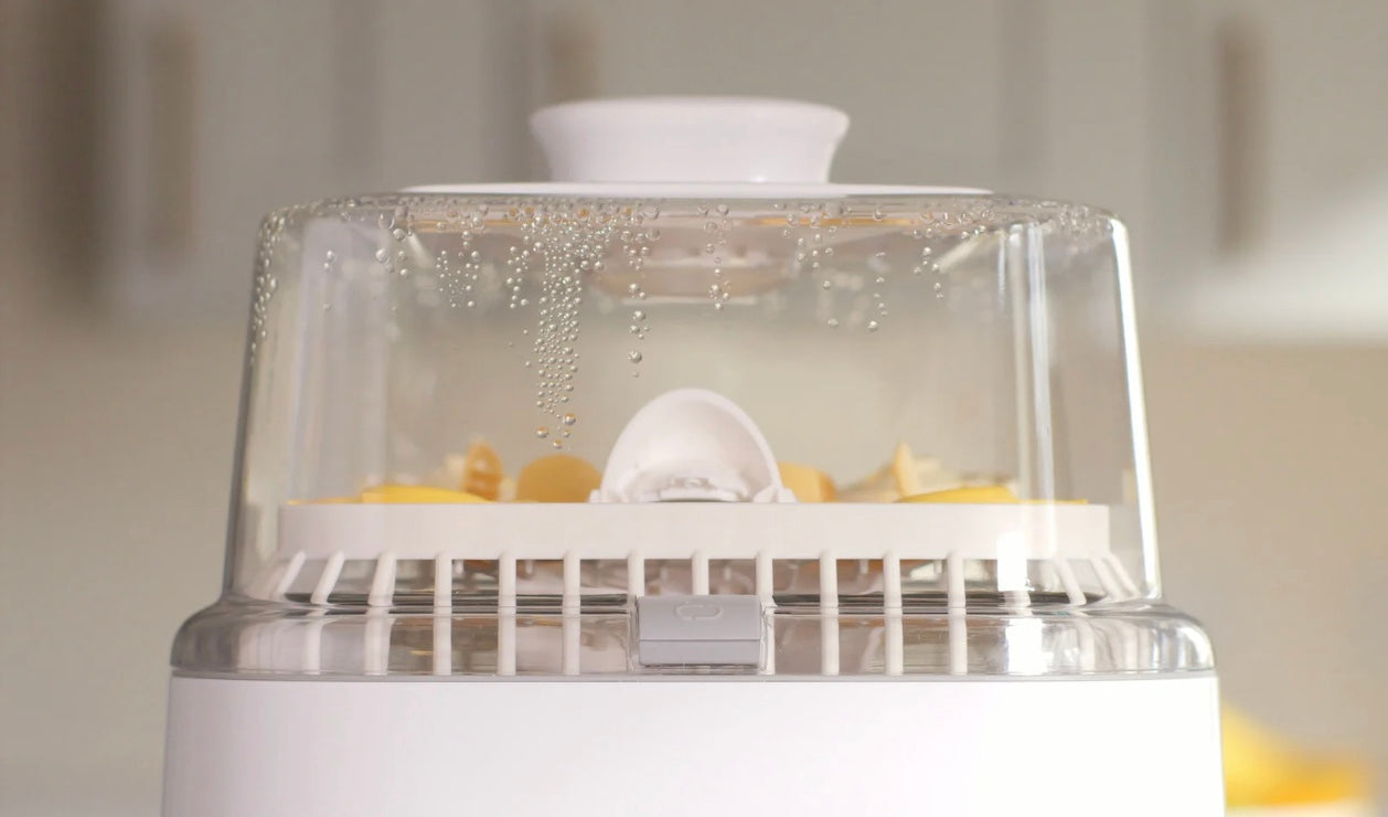 Sterilises with pure steam power, wiping out 99.9% of germs in only 10 minutes—naturally.