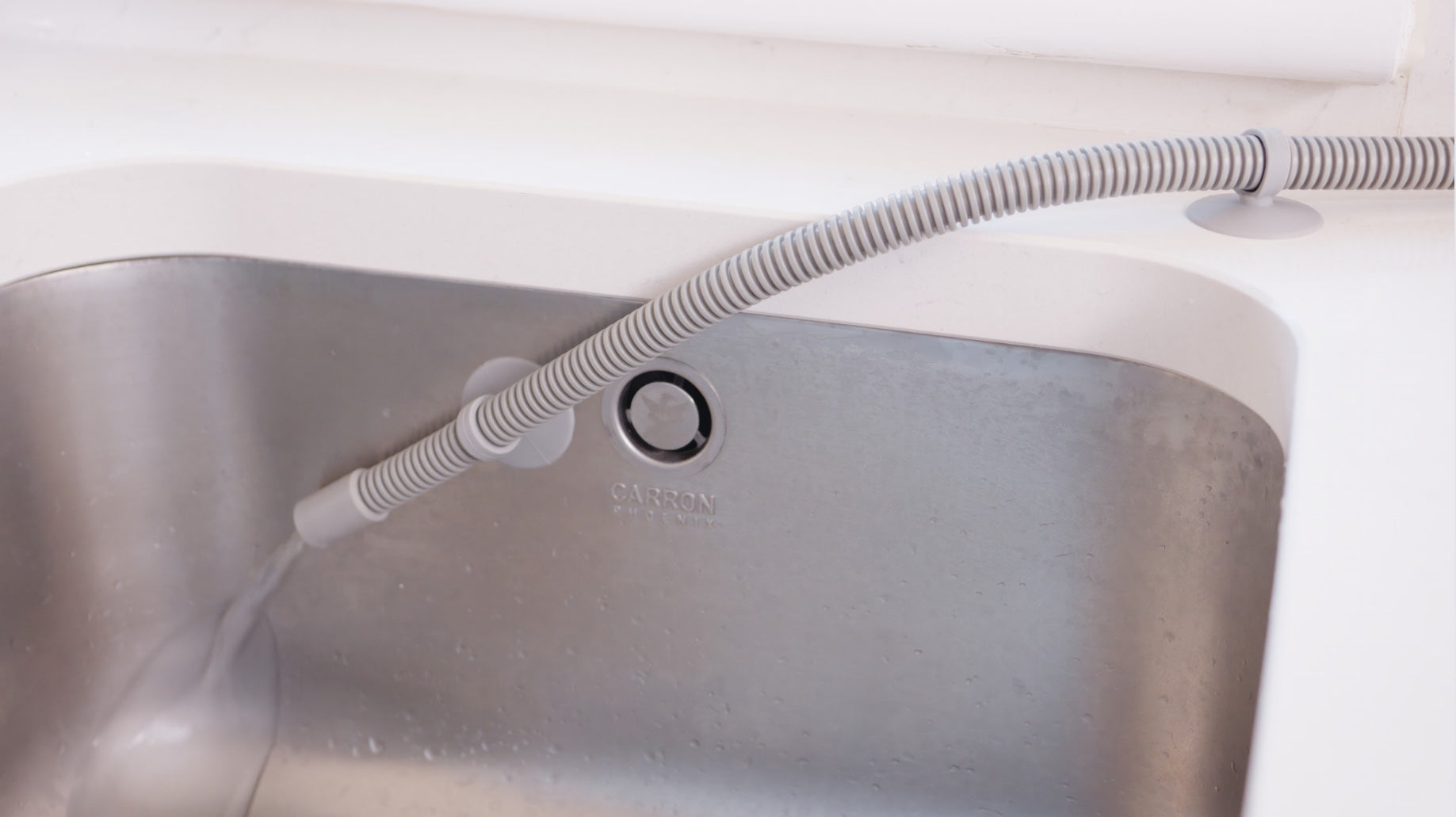 Bebello Washer drains all on its own—straight into the sink or a basin. No plumbing needed.